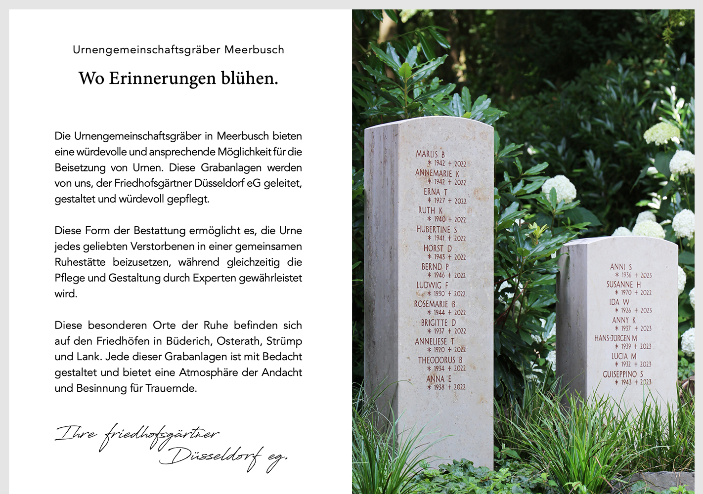 Urnengemeinschaftsgräber Düsseldorf "Gemeinsam statt einsam"